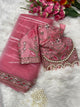 This masterpiece saree combines timeless craftsmanship with modern elegance, making it ideal for Karwa Chauth or grand occasions. Its premium fabric and intricate handwork ensure you stand out with grace and style.